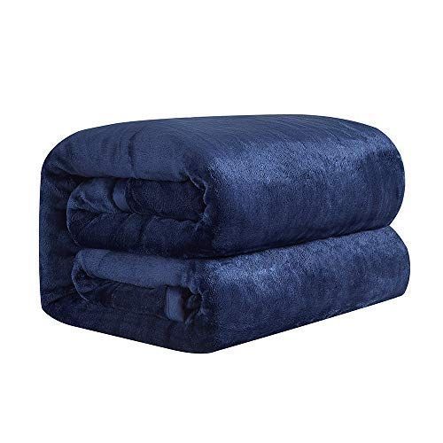 Color:ネイビー_Size:180x200cm 毛布 ダブル マイクロファイバー 厚手毛布 吸湿発熱 中綿入れヒート 毛布 フランネル ふわふわ 柔らかい 暖かい 洗濯 静電防止 抗菌防臭 (紺i色, 180*200cm)