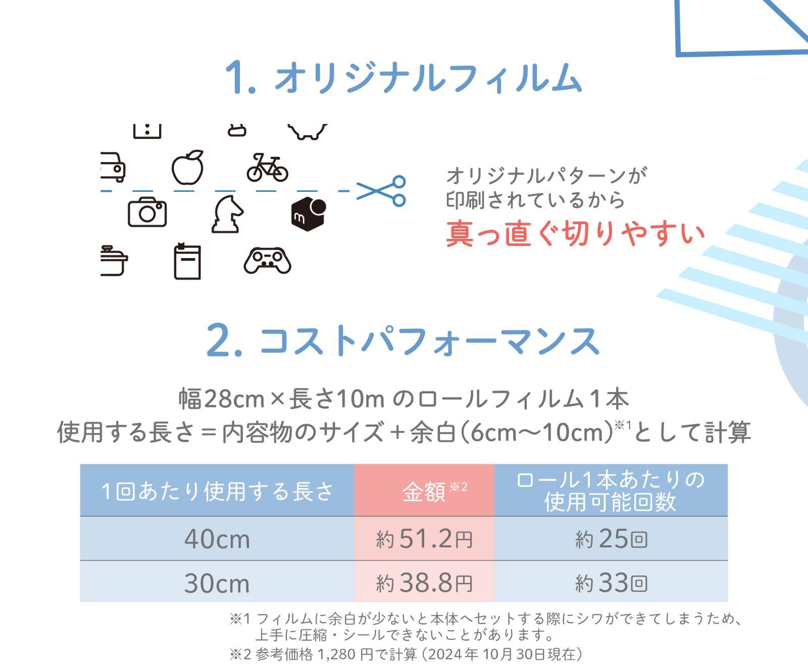 ・ロールフィルムは内容物に合わせて長さを自由に調節できます。