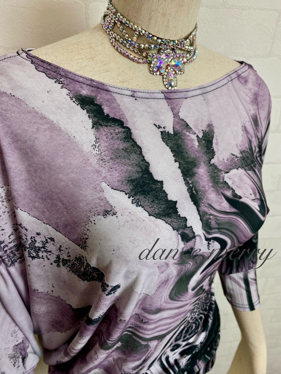 MERRY 社交ダンス ドルマン チュニック トップス 紫 黒 パンツに 2962
