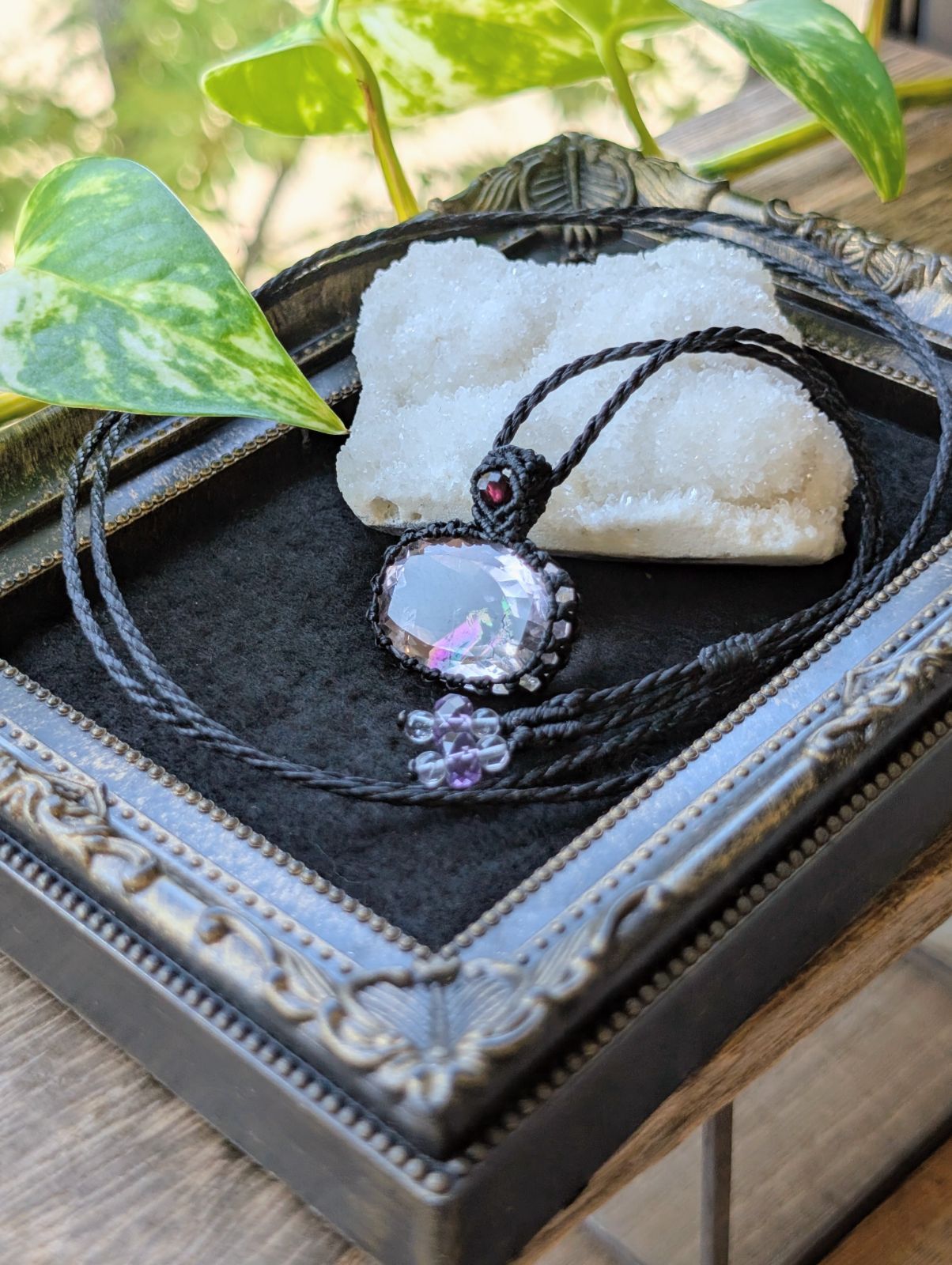 High Quality Stone レインボーアメジスト アメジスト マクラメ編みネックレス 428 マクラメネックレス