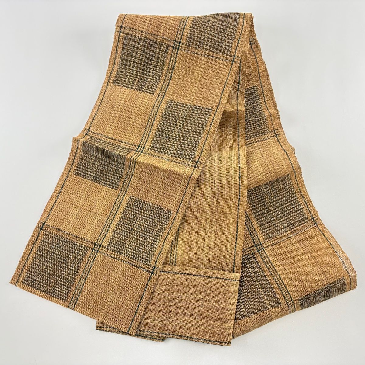 名古屋帯 八寸名古屋帯 夏帯 変わり市松 縞 シナ布糸 茶色 科