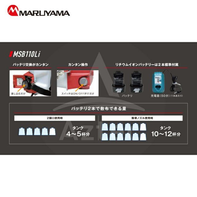 ・標準付属品/ノズル:マキタBL1013バッテリx2個/2頭口/除草ノズル