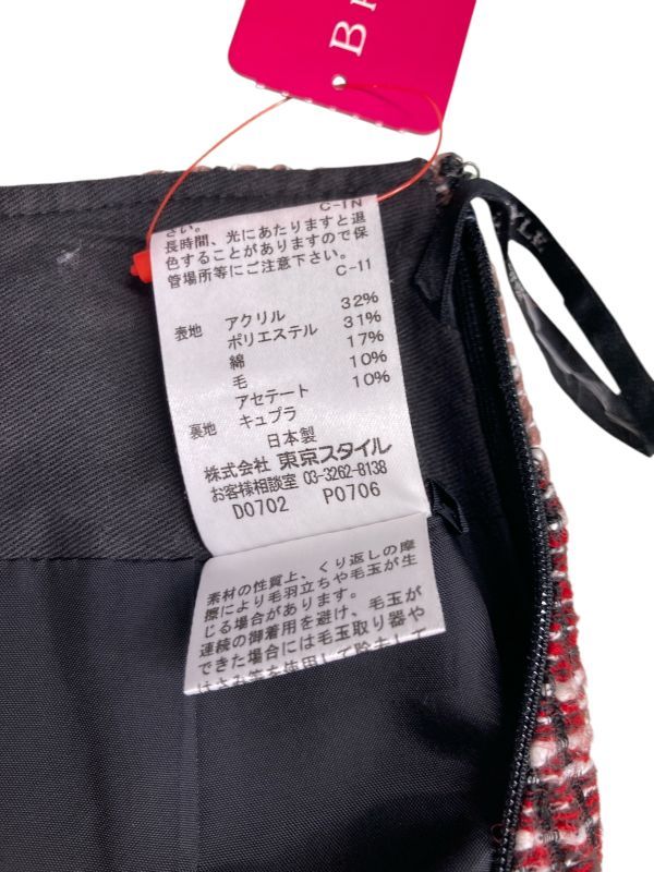コウジワタナベ KOJI スカート 膝丈 ツイード 台形 マルチ 赤 絹 綿 毛 11 L レディース T 5 Y 004