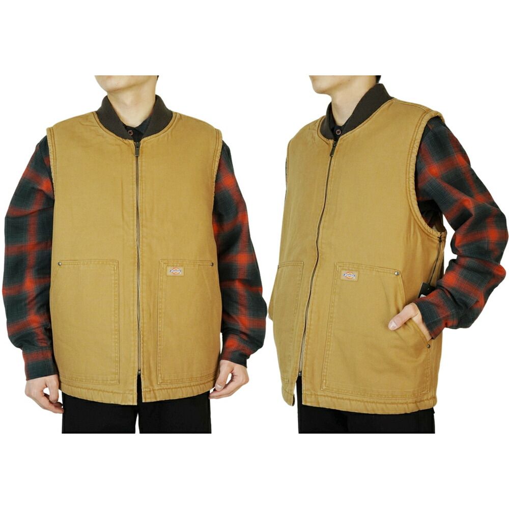 DICKIES ディッキーズメンズ ベストダック インサイド ボア ベスト DUCK INSIDE BOA VESTSTONEWASHED BROWN BLACK黒 茶色 ダック地 中綿 レイヤード 重ね着TATOO ローライダー 作業着 大きめサイ