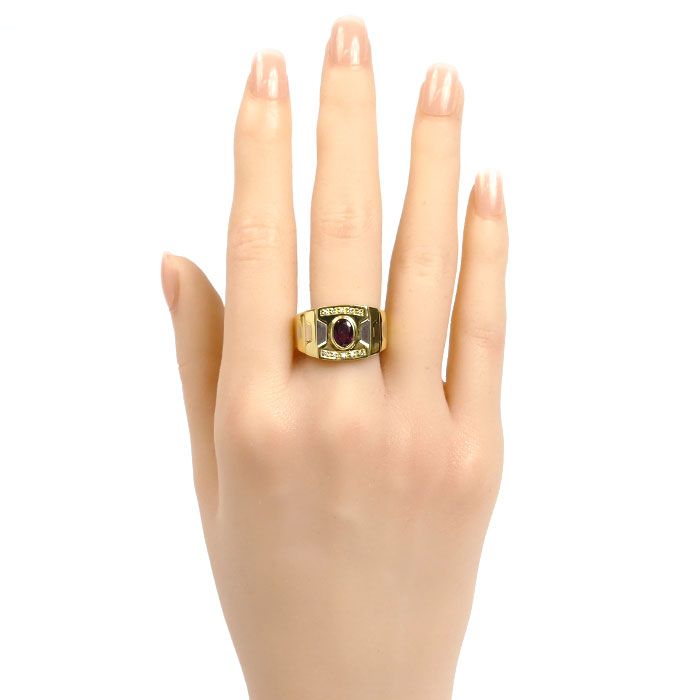 K 18 YG イエローゴールド Pt 900プラチナ リング 指輪 ガーネット ダイヤモンド0.05 ct 20号 10.2 g メンズ
