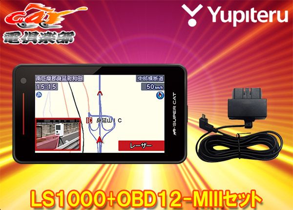 ユピテルLS 1000 または同等品GS OBD 12-MIII無線LAN搭載レーザー&レーダー探知機OBDIIアダプターセット