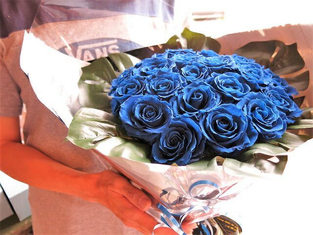 青 花束 プリザーブドフラワー 20本使用 枯れずにいつまでもキレイな青 ギフト