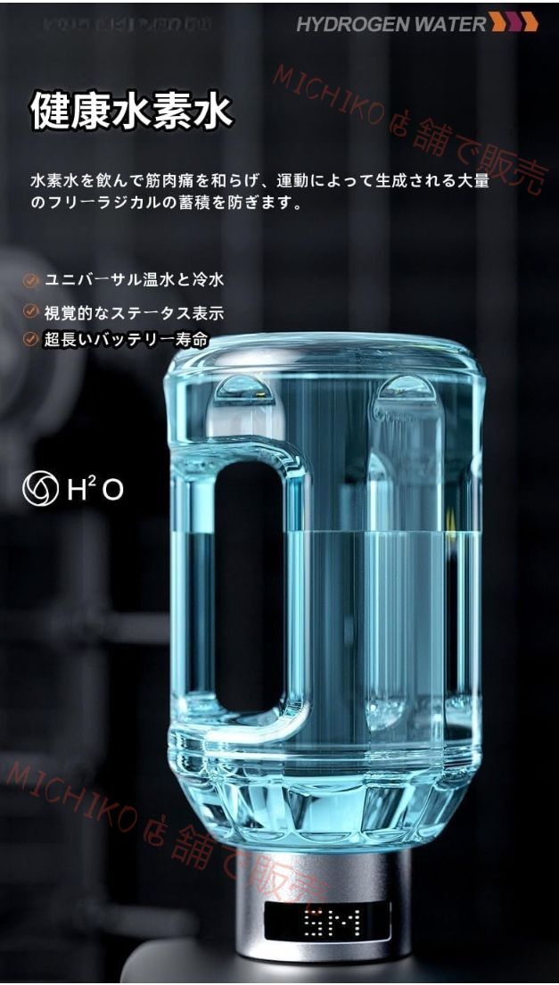 【商品仕様】アイテムタイプ: 水素水ボトル;材質:プラチナチタンシート+PC;容量: 1.5L;バッテリー: 1800mAh ポリマーリチウム電池 (付属);充電時間: 2-3 時間 (フル充電後 17-20 回動作可能)。