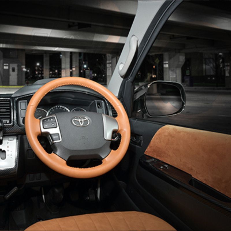 4型以降に対応 キャメルレザー オールレザーステアリング ハイエース 200系 4型以降 H 25 12- LANBO LST 150-F 車 カスタム パーツ 内装 おしゃれ