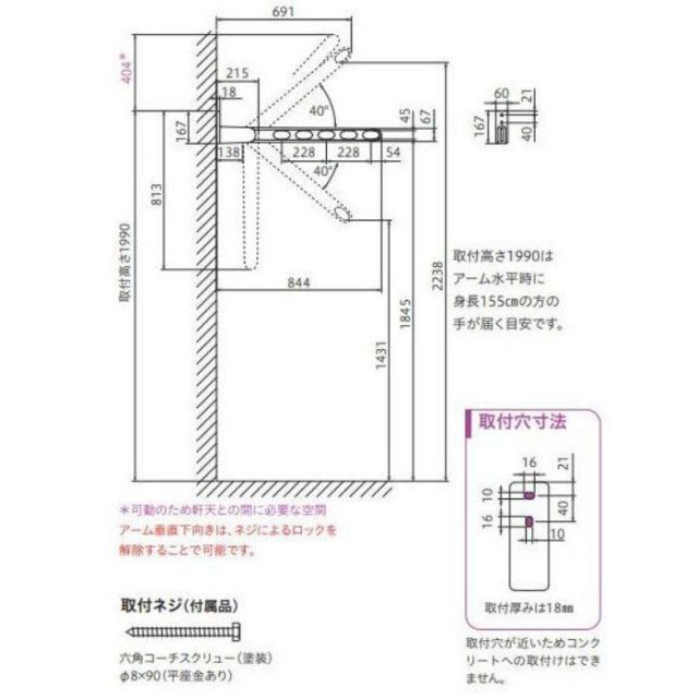 設置後も簡単操作で竿の高さ(角度)を3段階に調整可能なので、ベストポジションでの物干しが可能です。