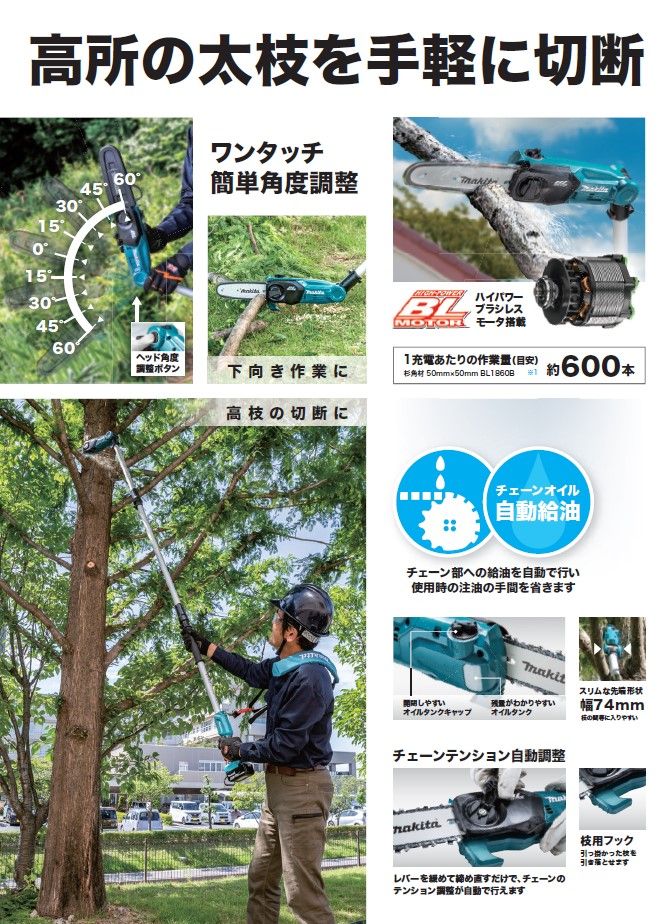 マキタ makita 200 mm充電式高枝チェンソー 18 V 本体のみ