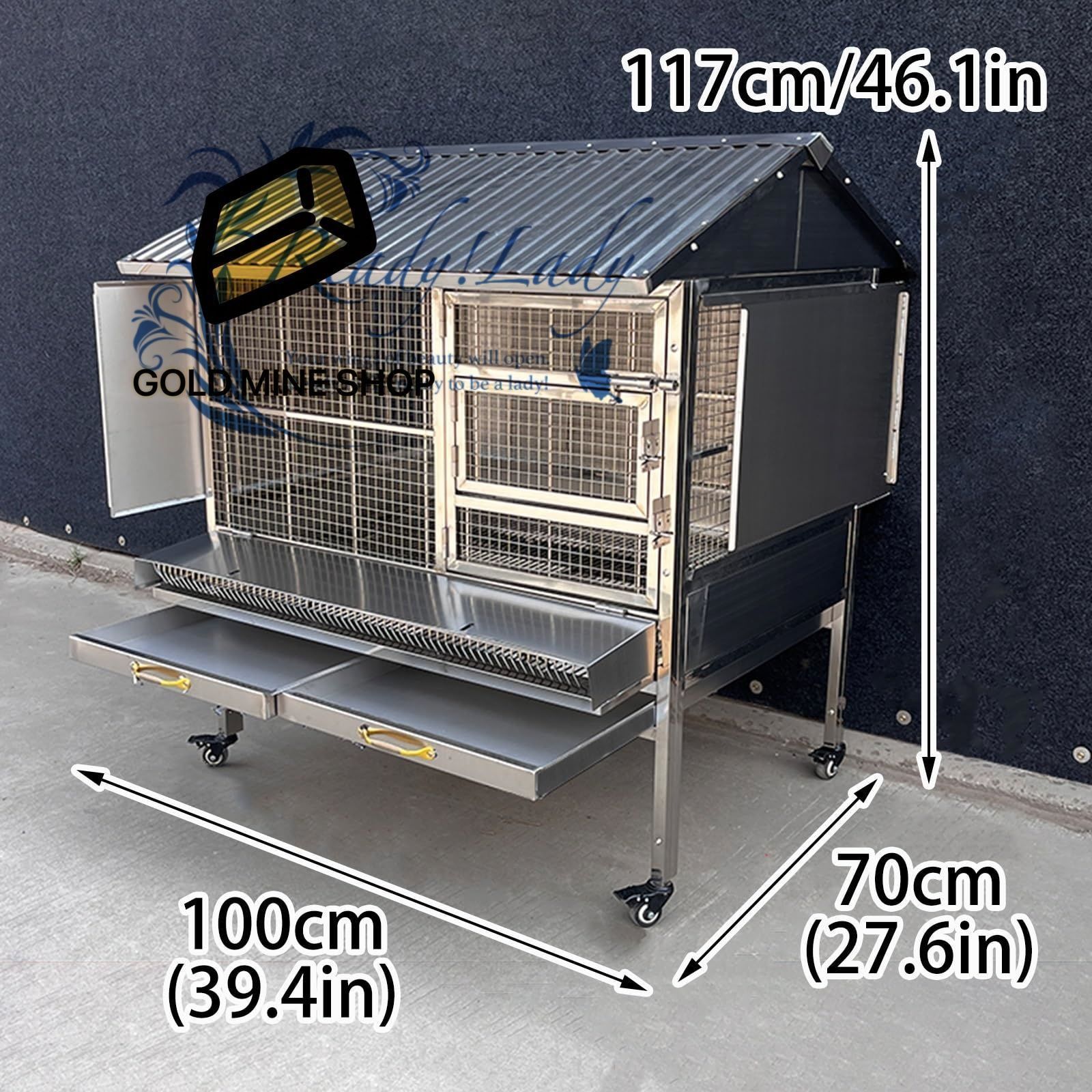 金属製鶏小屋 車輪と漏斗トレイ付きの屋外用ウサギ小屋 小動物家禽用の噛みつき防止モルモットケージ 100 70 110 cm