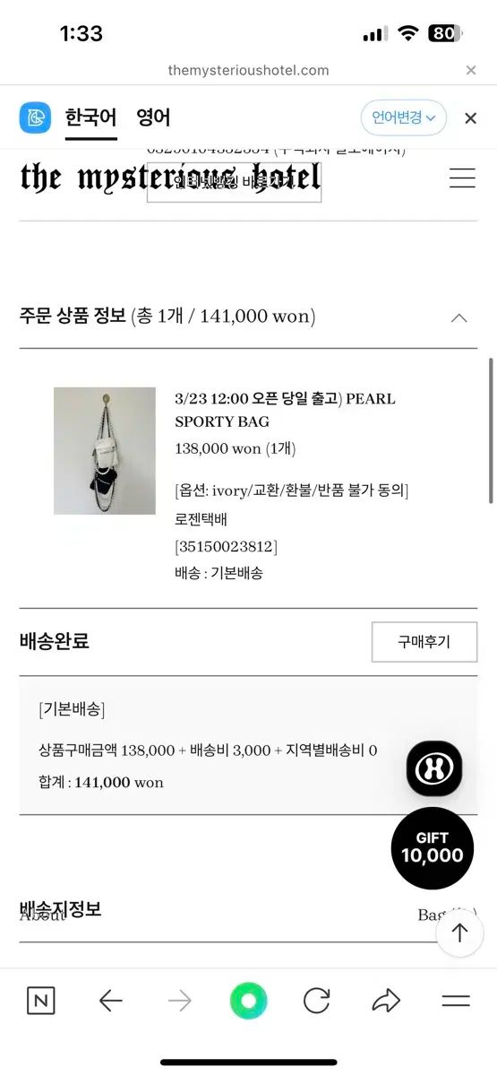 141,000ウォンでパッケージを購入しました