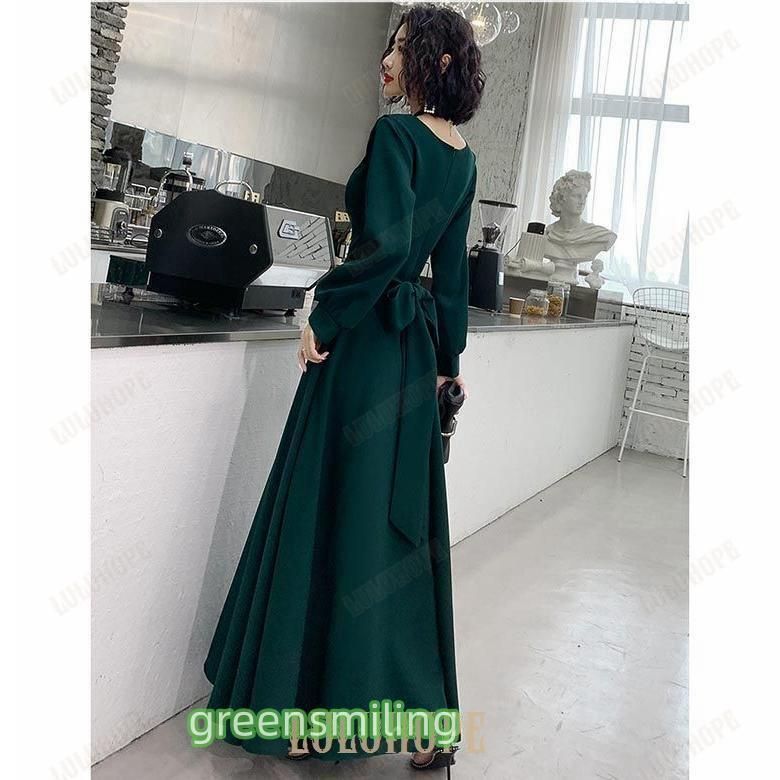 ロングドレス 演奏会 ドレス 大人 ピアノ 発表会 vネック 袖あり イブニングドレス 結婚式 母親 パーティードレス ワンピース
