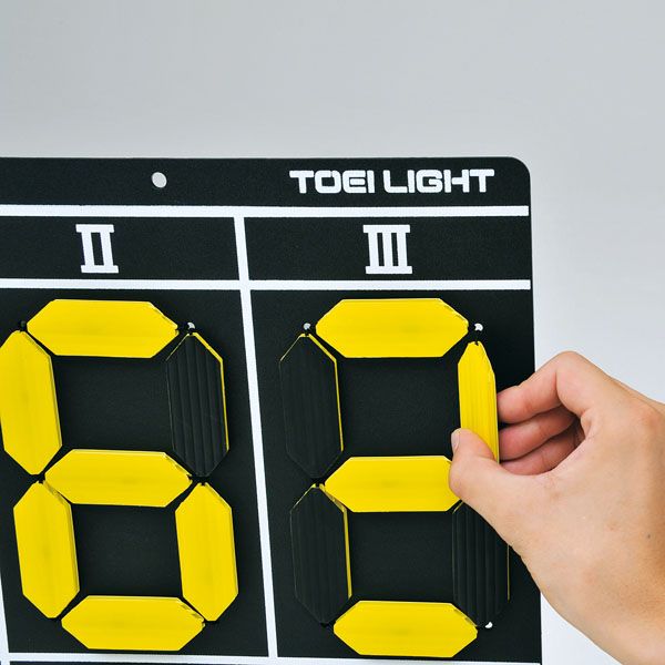 視認性が良く、簡単操作(手動)のデジタル文字表示スコアボード。パネルをはがす事無く数字を作るワンタッチ回転式。
