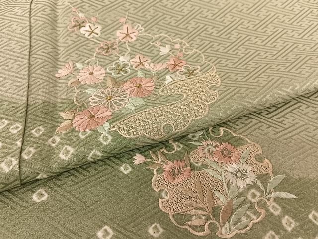 平和屋着物 訪問着 絞り 中国三大刺繍 汕頭刺繍 スワトウ刺繍 雪輪花文 正絹 zg