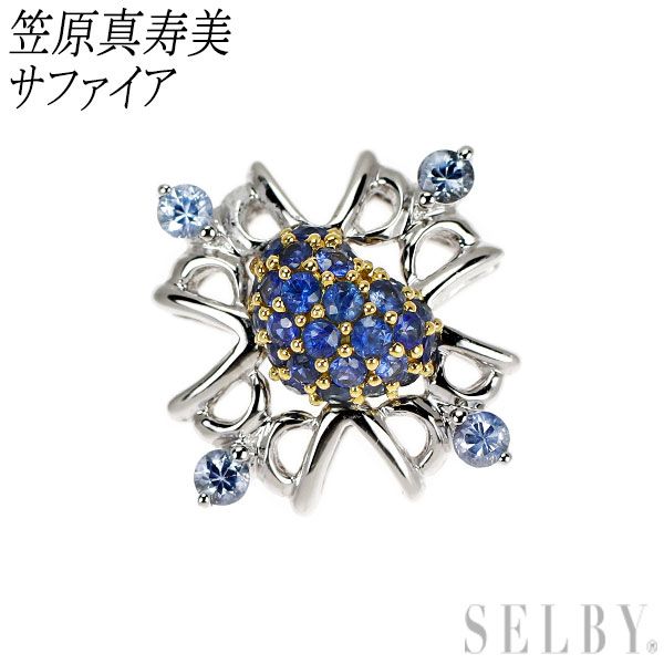 笠原真寿美 K 18 YG WG サファイア ペンダントトップ ハート クロス