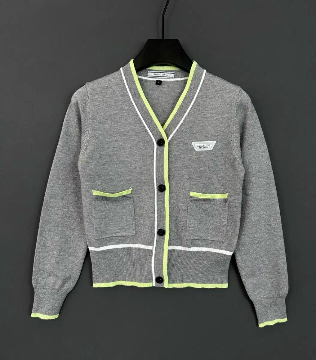 グレーのバターンにライム色のPOINTが入っており、エレガントな感じを与えます。フィールドLookとしても、普段着としても活用しやすいカーディガンです。