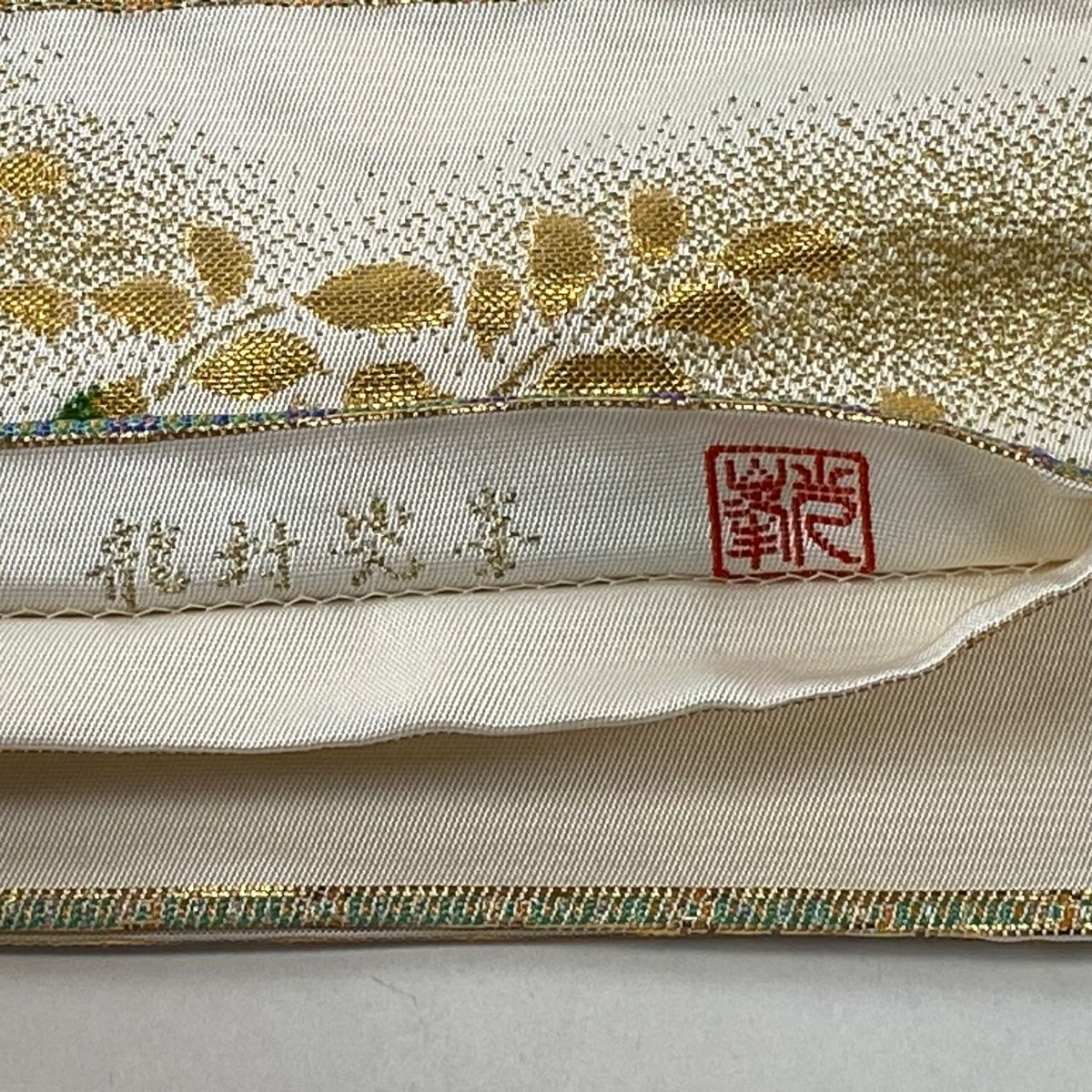 袋帯 龍村光峯 落款 関西仕立て 天平鳳凰文錦 箔 クリーム お太鼓柄 正絹