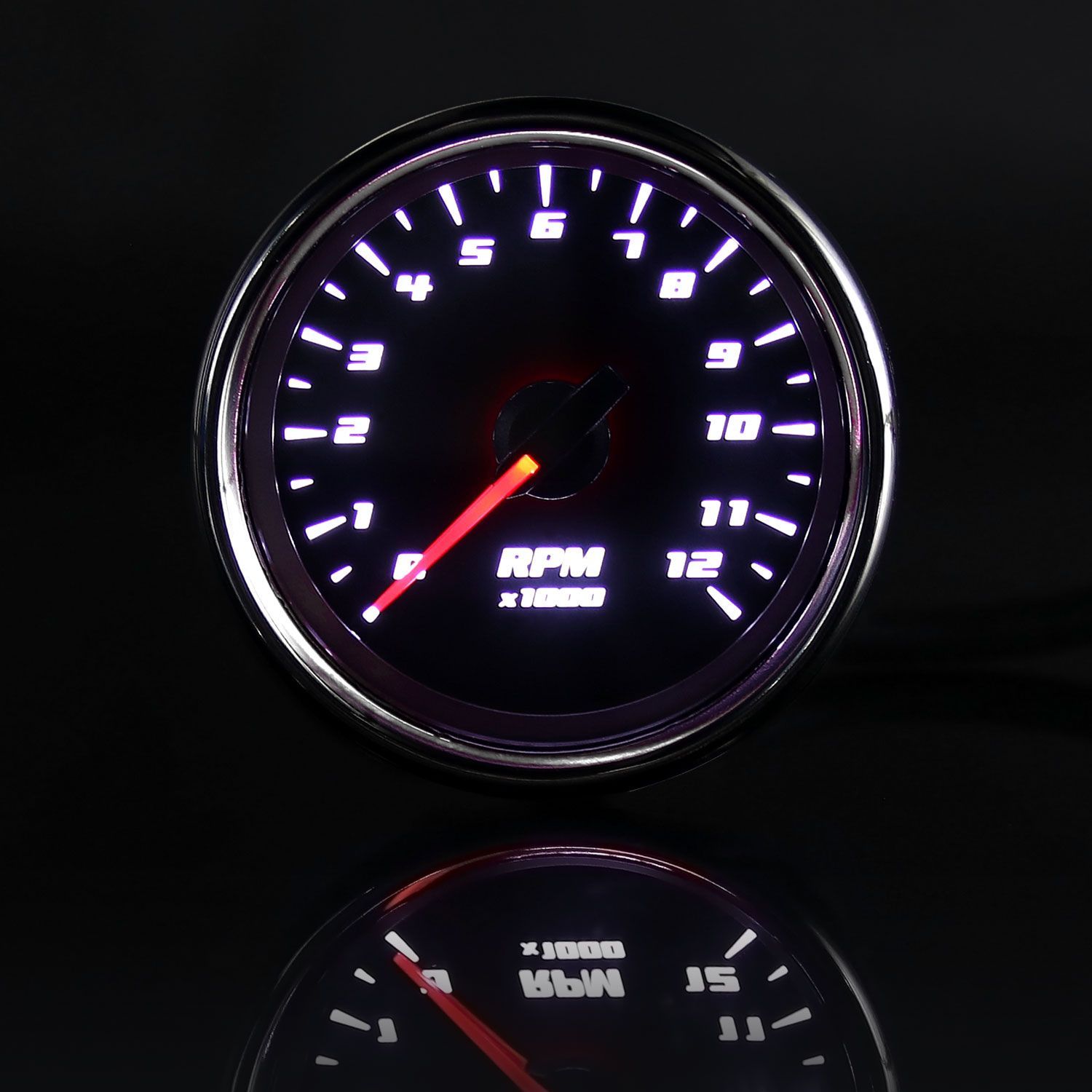 バイク用 電気式 LED ミニ タコメーター 60 mm ブラック ホワイトLED 汎用 回転数 後付け 計器 追加メーター ステー付き 12 V カスタム 交換 修理 パーツ 60パイ 60Φ 60ミリ メーター 黒 バックライト ハンドル