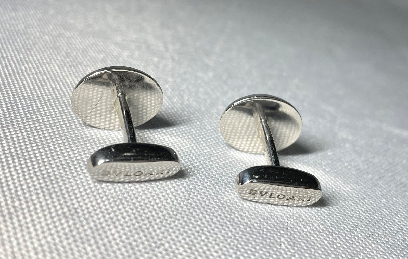 BVLGARI ブルガリ ブランドロゴ文字 スターリングシルバー オーバル立体カフス カフリンクス ボタン SV 925 ケースあり