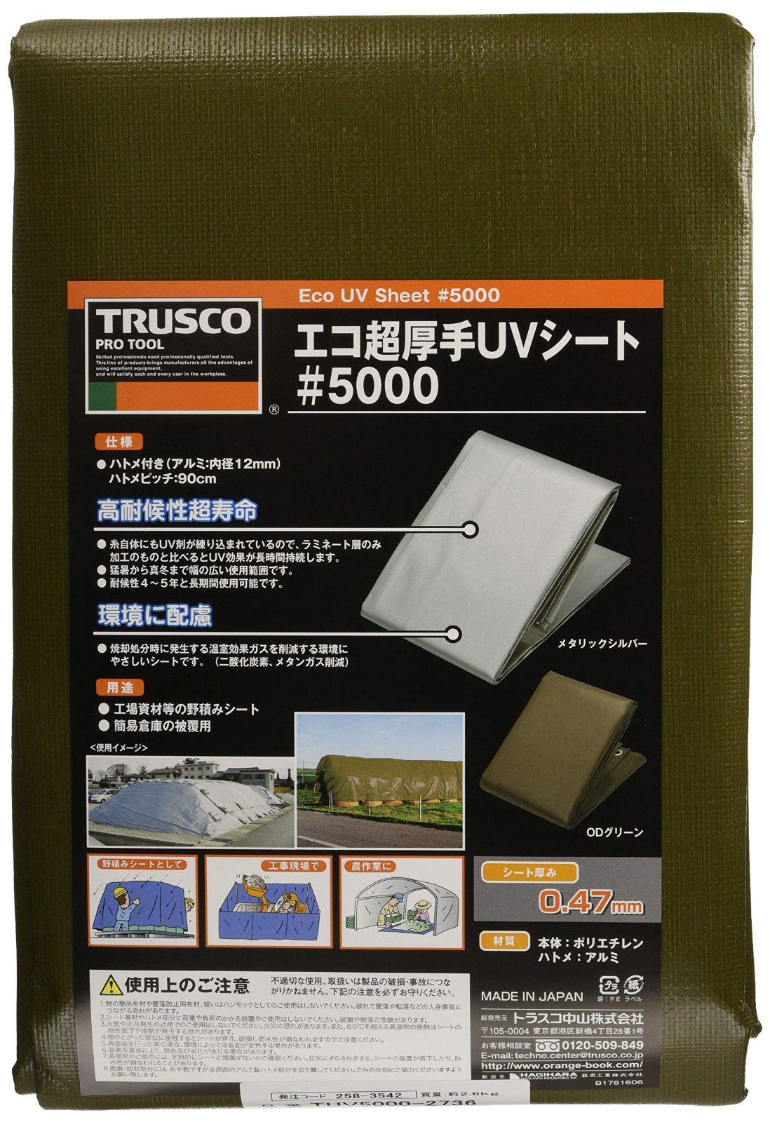 Color:オリーブドラブグリーン_Size:2.7×3.6m TRUSCO(トラスコ) エコ超厚手UVシート#5000 ODグリーン 2.7m×3.6m TUV5000-2736