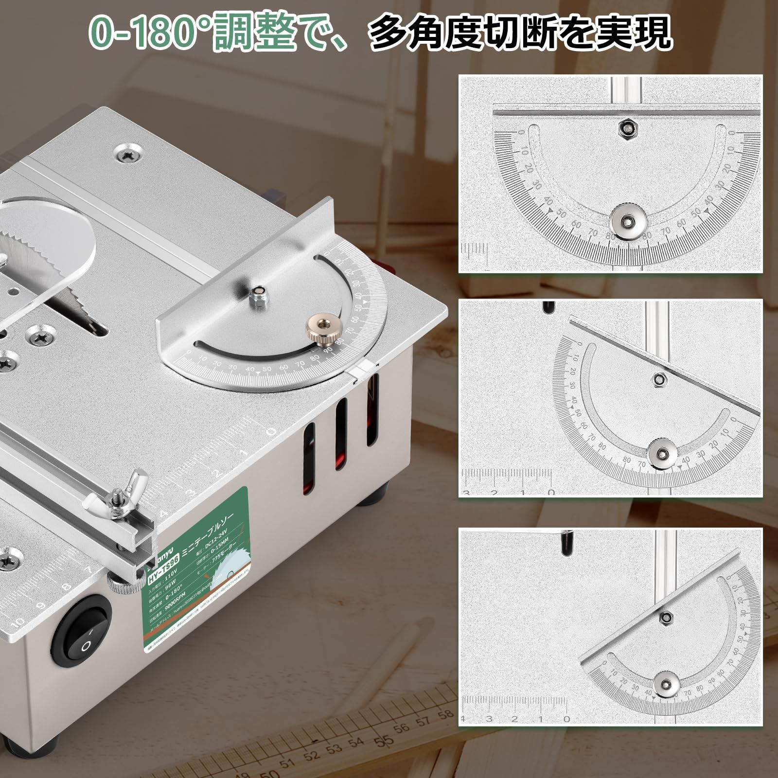 【1台で多機能】マイターゲージーは0-180°調節可能、多角度切断を実現します。さまざまな切断材に応じてご希望のように調整します。DIYに最適です。