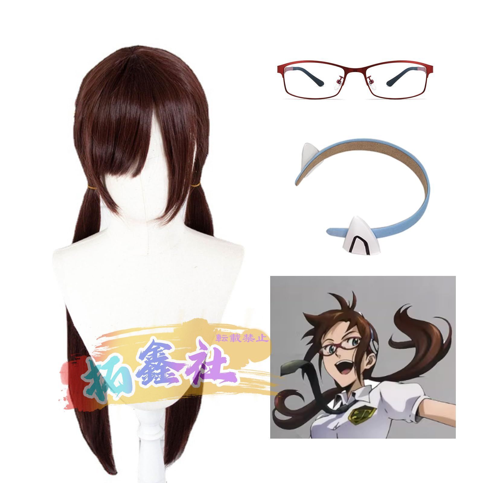 EVA 真希波 マリ コスプレ衣装 ウィッグ 髪飾り めがね付き 新世紀エヴァンゲリオン 全セット アカデミック ユニフォーム 制服