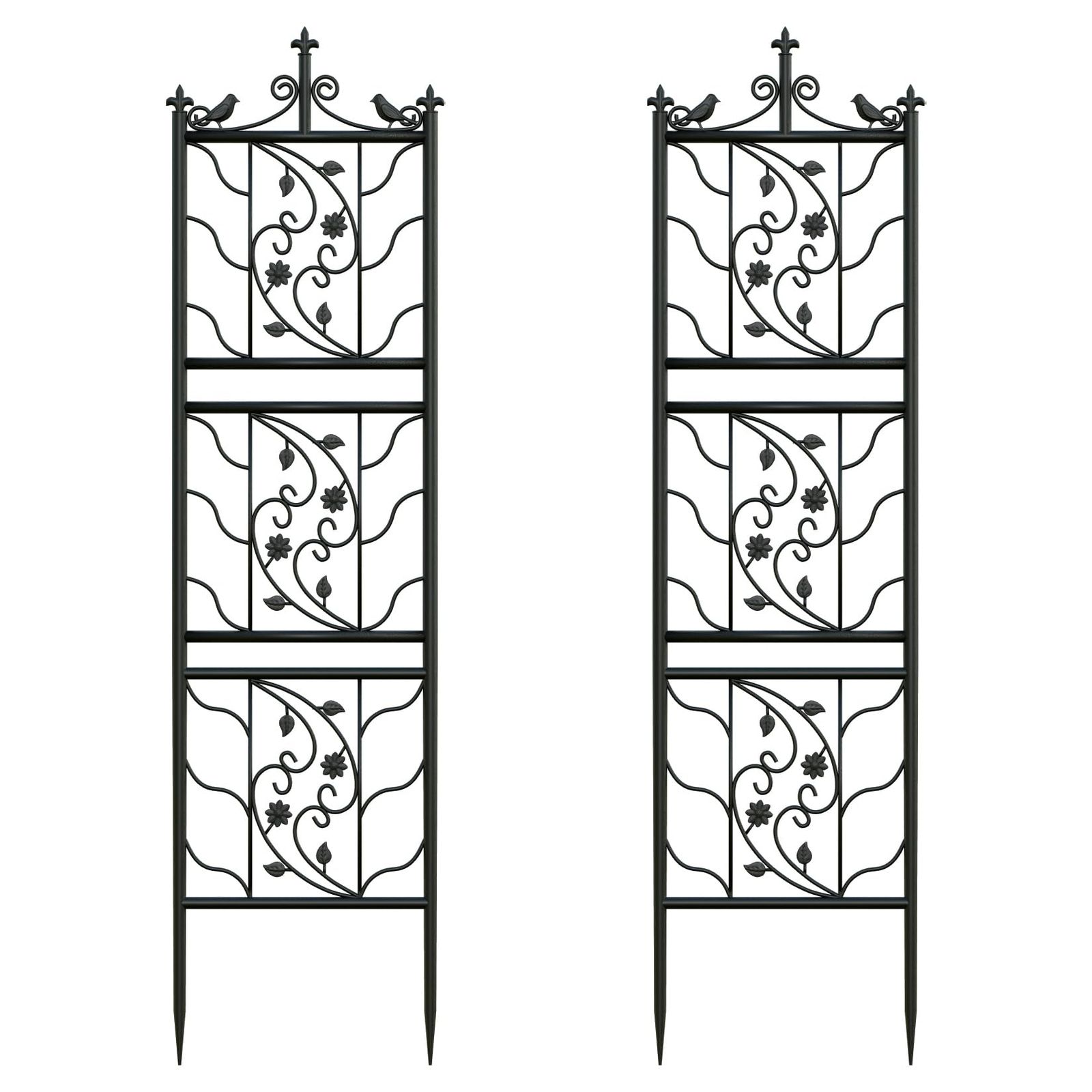 Wisfor つる 用トレリス アイアン 屋外 ガーデンフェンス 目隠し 差し込み型 高い 黒 ハイタイプ 180 cm 鳥 クレマチス 朝顔 つる性植物誘引 ガーデニングつるトレリス おしゃれ 支柱