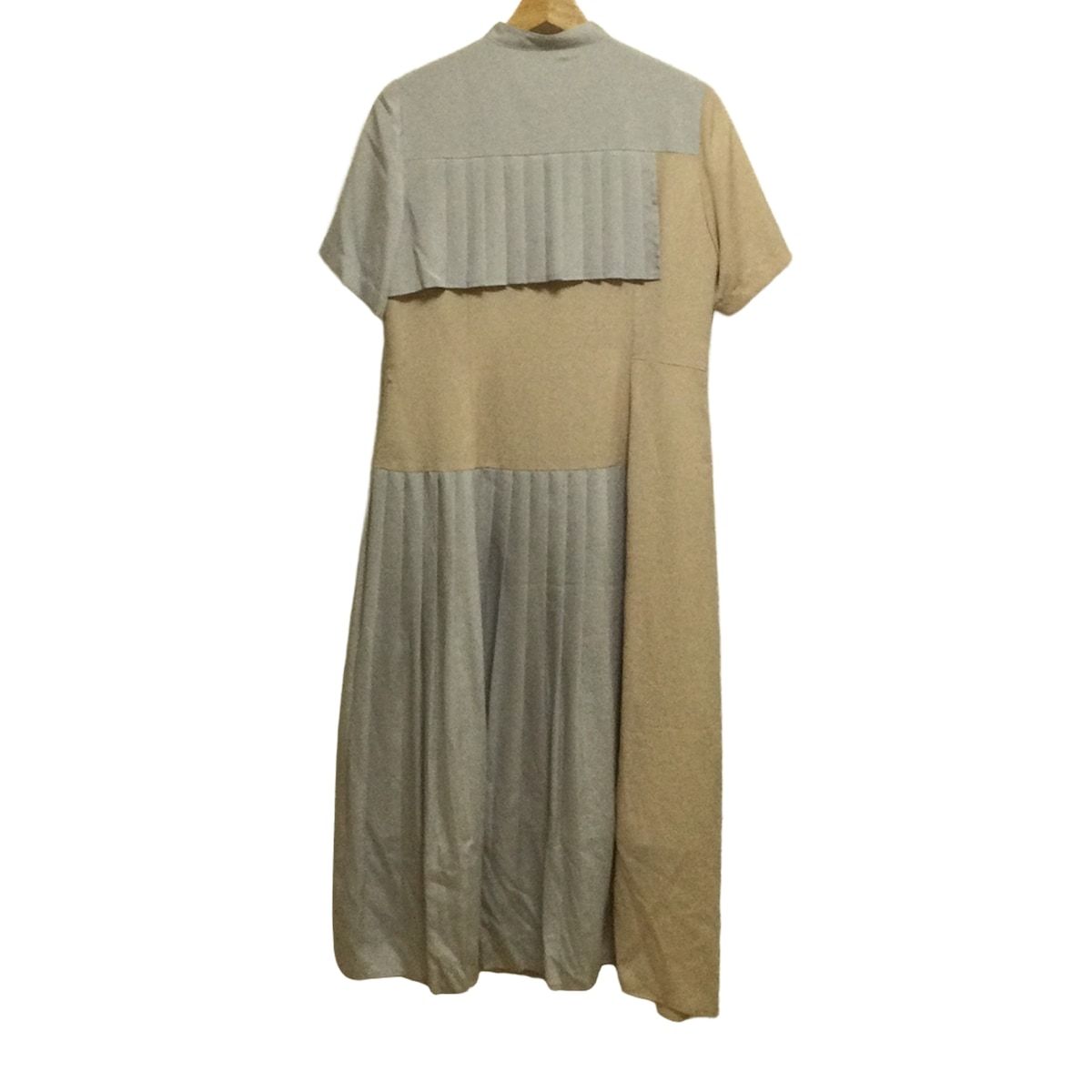 ダイアグラム ワンピース サイズ38 M レディース - ベージュ×グレー 半袖 ロング フリル プリーツ シャツワンピ