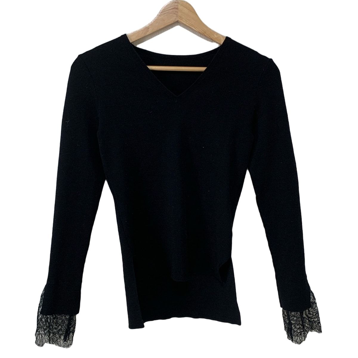 FOXEY フォクシー 長袖セーター サイズ38 M レディース - 36378 黒 Vネック カシミヤ シルク レース