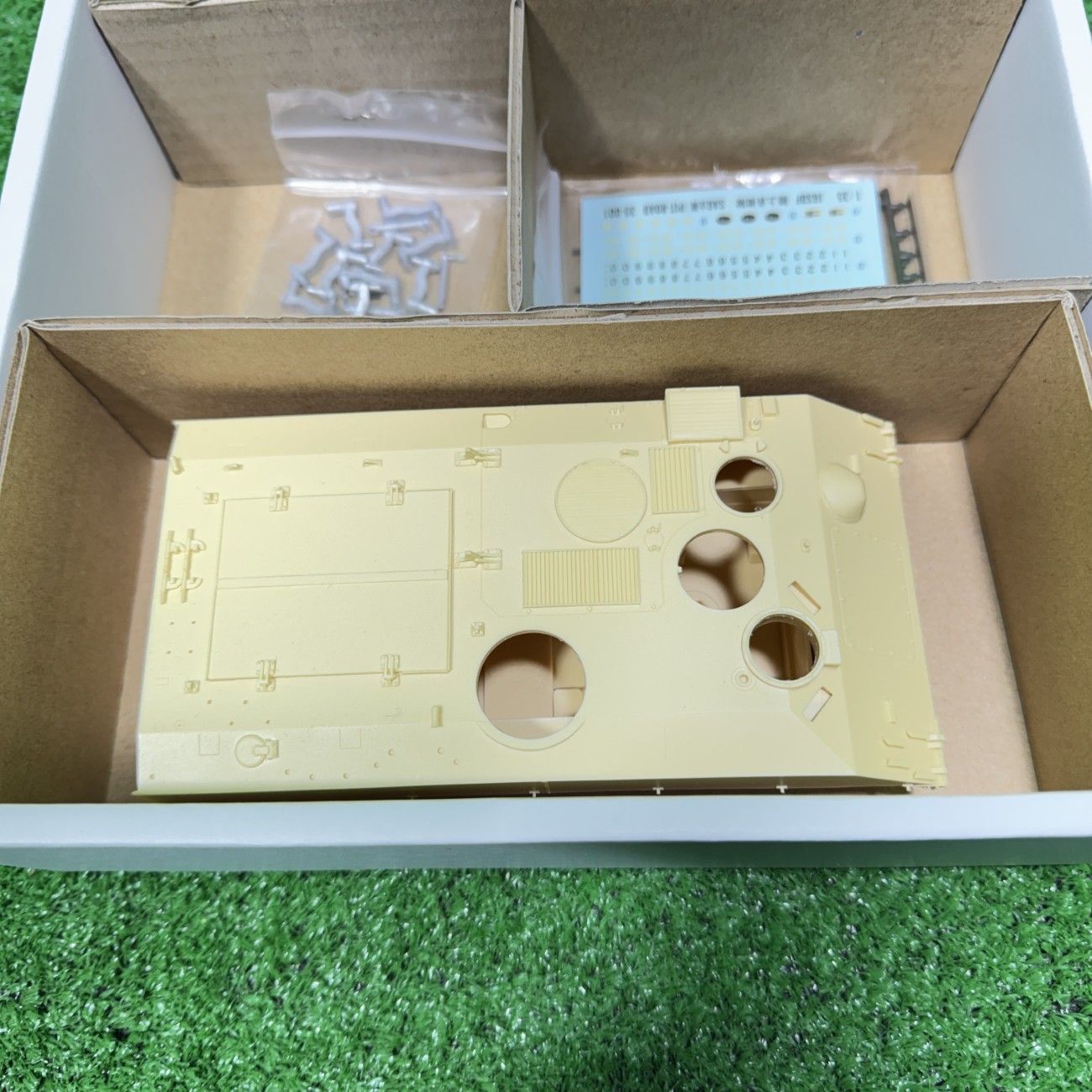 ・車体パーツなどの主要レジン部品に目立つ歪みや破損は見受けられませんが、素材特有の気泡やバリの処理は必要となります。