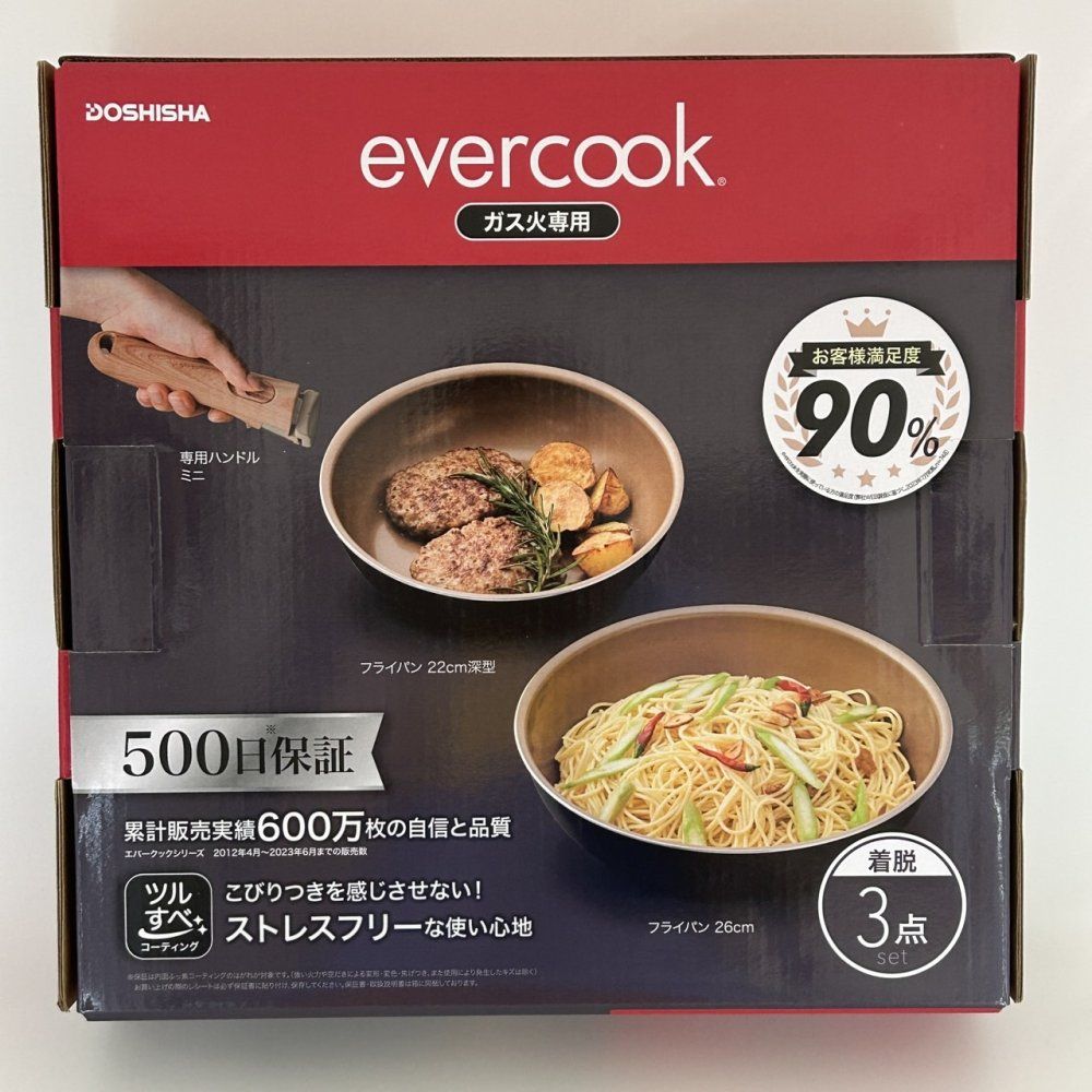 evercook フライパン セット ガス火 ナチュラル取っ手 着脱式 22 cm深型 26 cm 収納便利 3点セット こびりつきにくい