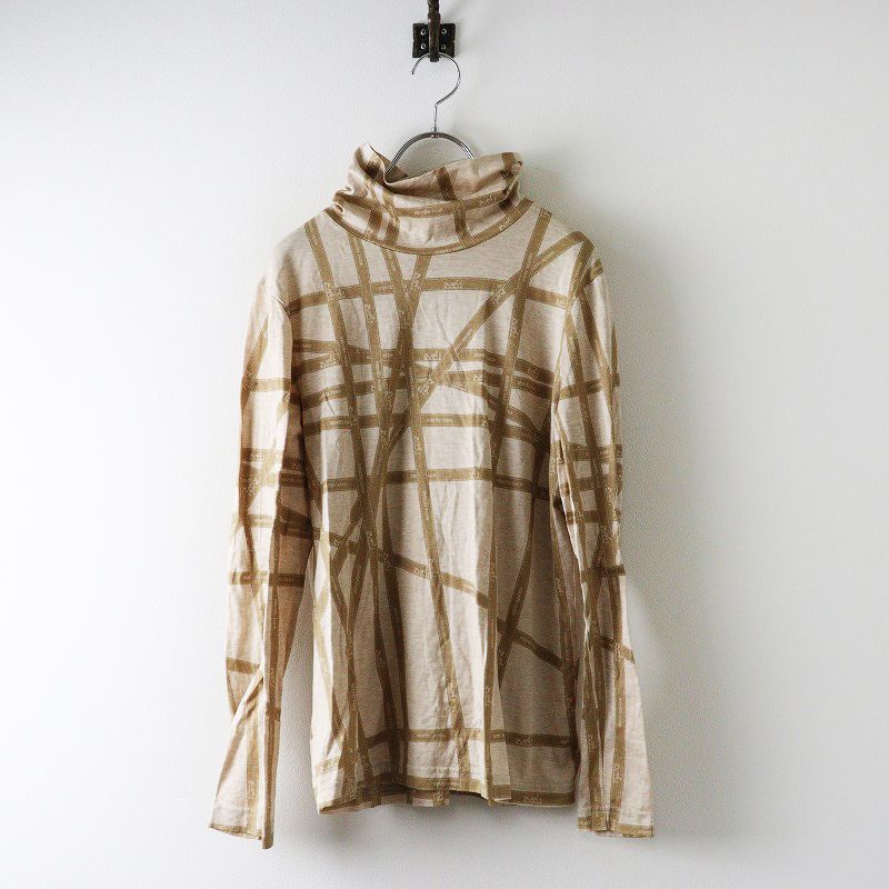 Archive エルメス HERMES マルジェラ期 ボルデュック リボン柄 タートルネック 長袖Tシャツ L ベージュ┃トップス