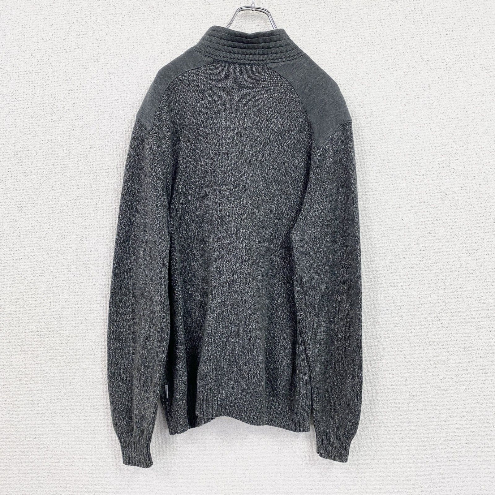 古着 Calvin Klein ドライバーズニット フルジップコットンニットジャケット ダブルジップ グレー XLサイズ