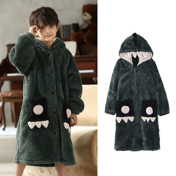。 パジャマ 子供 恐竜 ガウン 110CM 部屋着 ルームウエア 冬 秋 暖かい 着る毛布 暖かい あったか もこもこ 前開き バスローブ ロング丈 クリスマス ギフト ラッピングS1M3