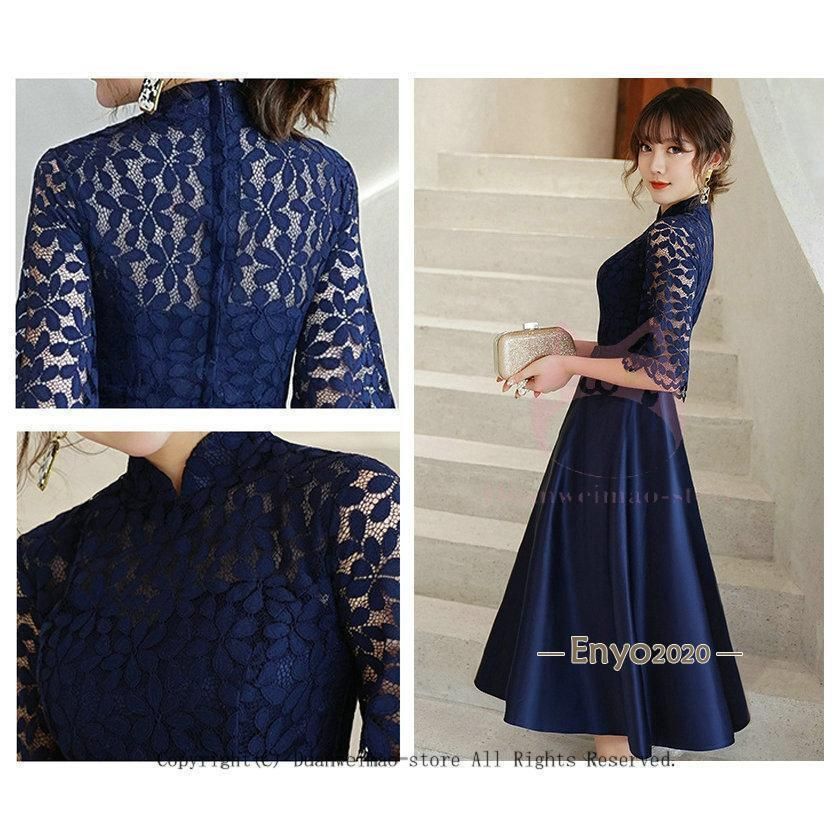 ■商品名:パーティードレス ミモレ丈 結婚式 ワンピース 結婚式ドレス フォーマルドレス 20代30代40代 五分袖 お呼ばれ 服 服装 大きいサイズ 大人 上品 女性