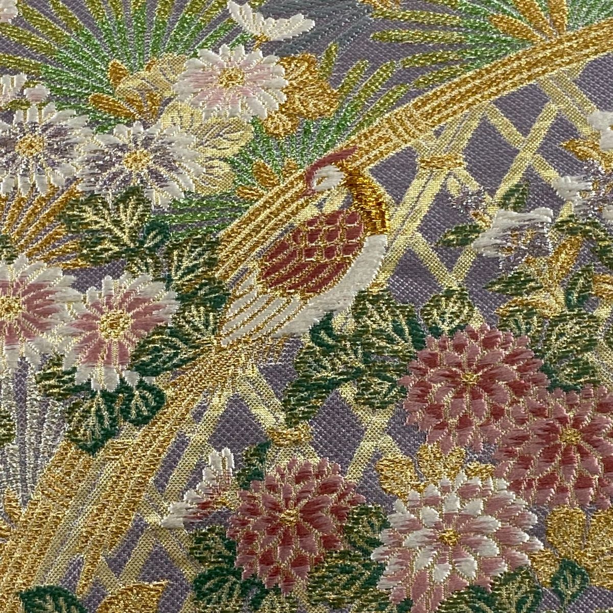 袋帯 松梅 鳥 唐織 金糸 クリーム 六通 正絹