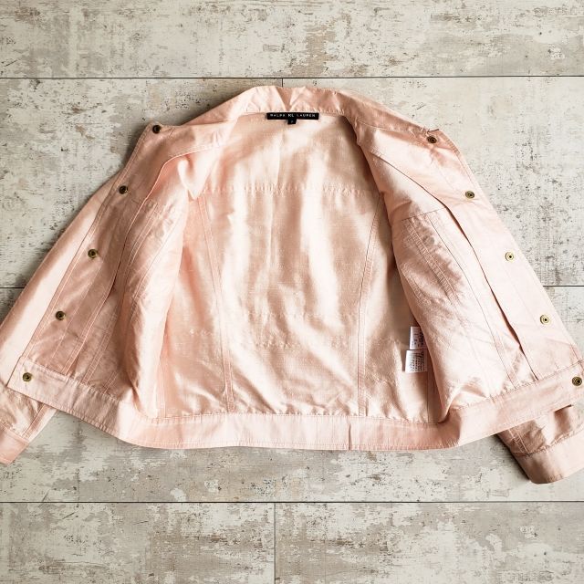 ラルフローレン RL シルクシャンタン シャツ ブルゾン 9号 ピンク系 シルク100% 薄手 RALPH LAUREN