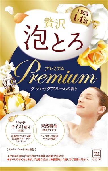 泡量がUPしたプレミアム処方。上質泡と至福の香りで、もっとぜい沢なひとときを。3種のリッチモイスト成分(保湿)と天然精油(香料ブレンド)配合。