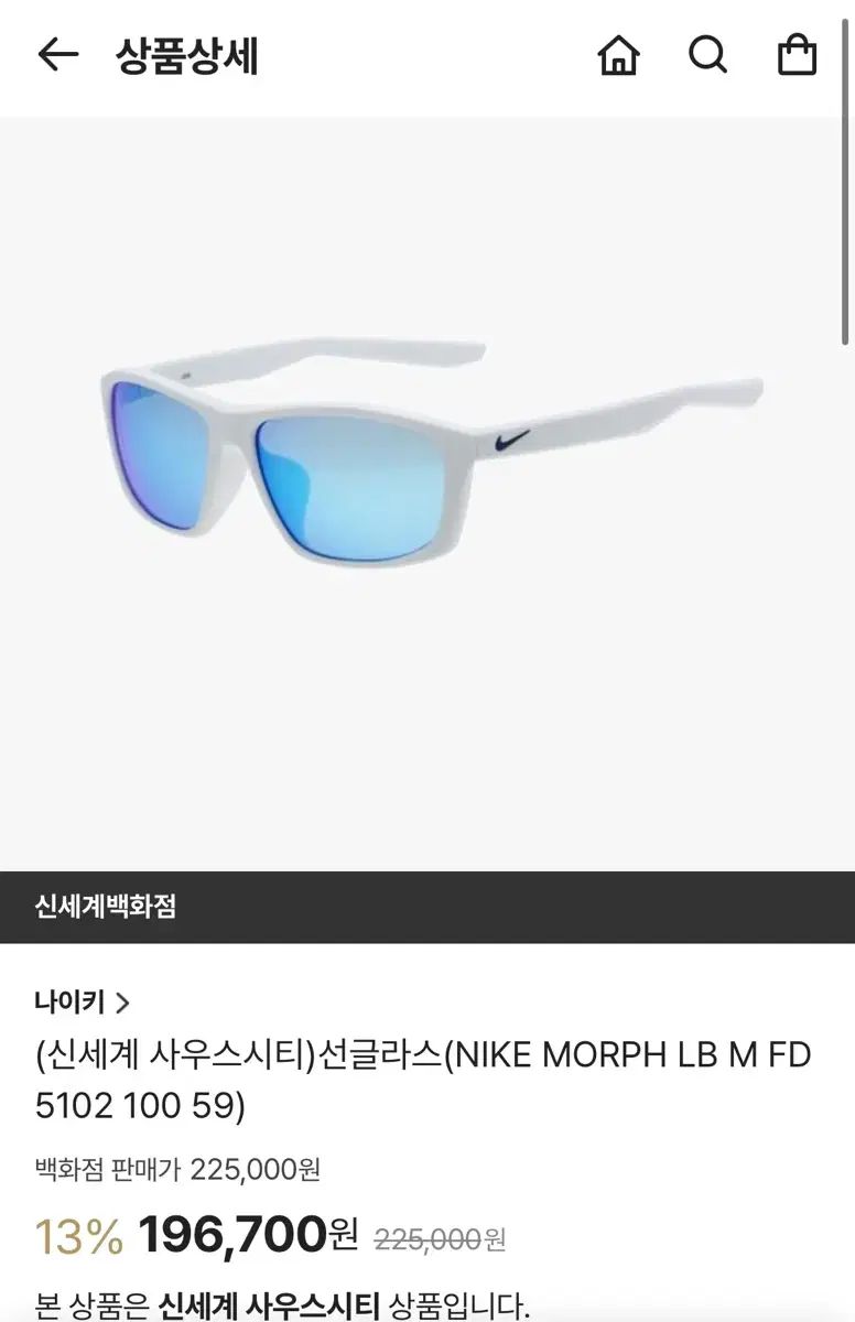 白フレームに青いレンズが魅力的なNIKEサングラスです。