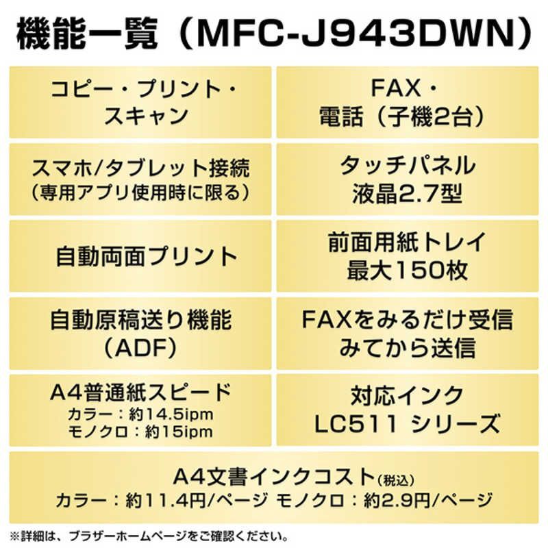 ブラザー brother プリンター A 4インクジェット複合機 Wi-Fi 簡単設定 PRIVIO プリビオ 子機2台 普通紙 ホワイト MFC-J 943 DWN