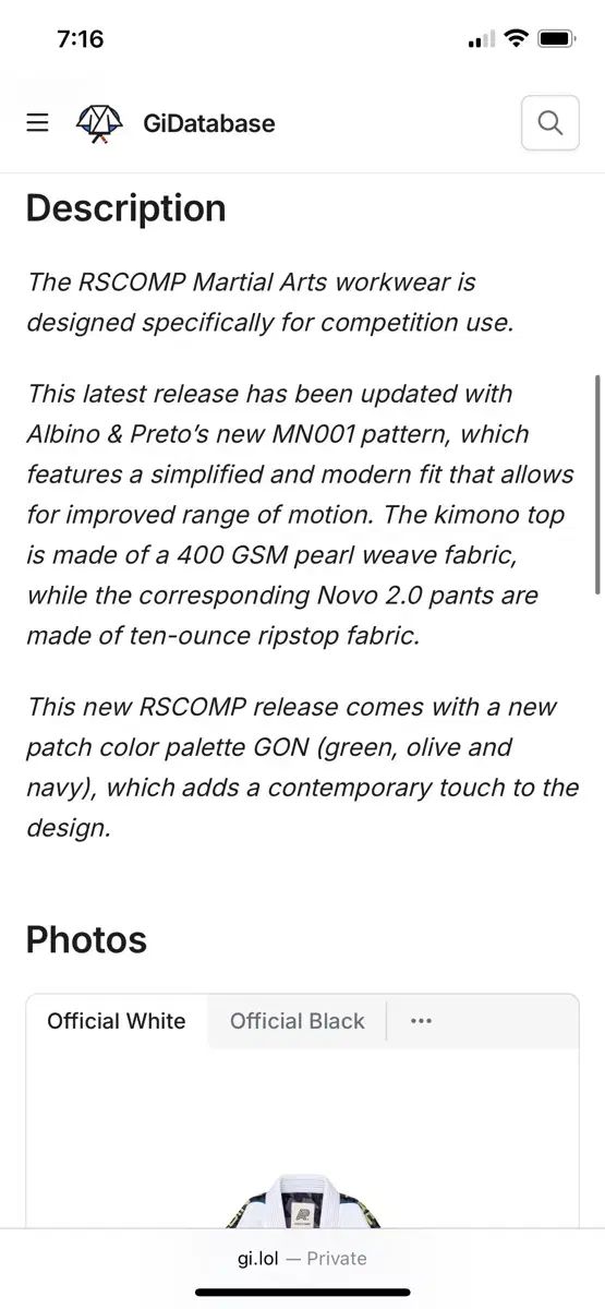 アルビノ アンド プレト 柔術 Jiu-Jitsu ギ RS COMP GON A1 Albino & Preto 柔道着 出品