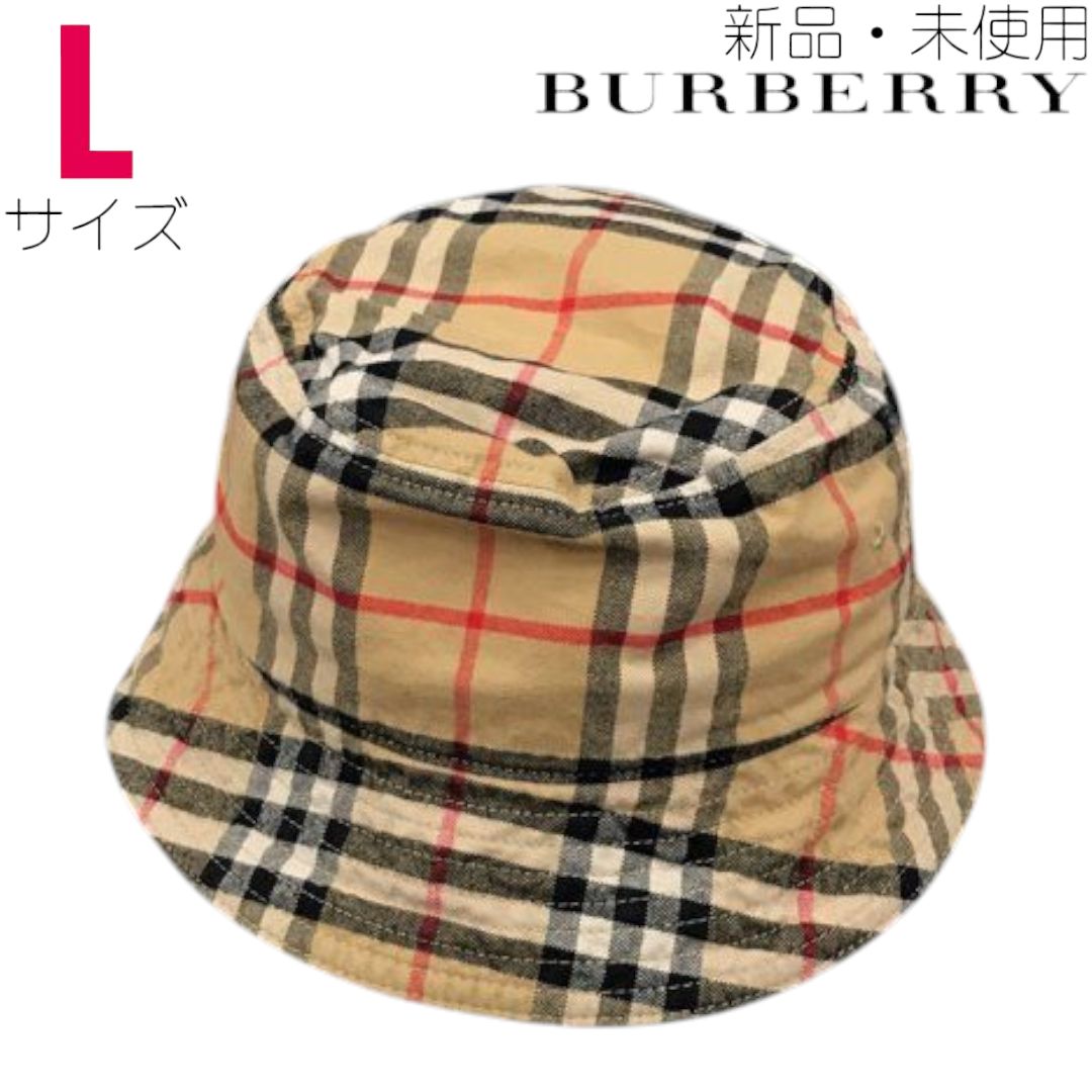 バーバリー 8075657 A 7026 ハット バケットハット 帽子 L ブランド小物 アーカイブチェック コットンツイル ベージュ 6265736