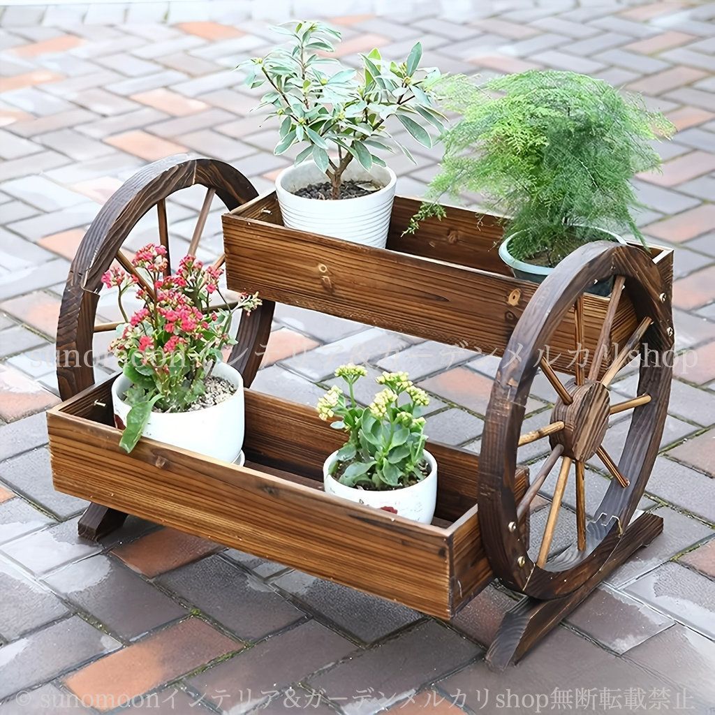 ヴィンテージ調 ガーデニング 庭の装飾 ガーデン 雑貨 ダブルホイール付き 植木鉢 鉢植え プランター おしゃれ 木製 4-7 ナチュラル インテリア 2段 ガーデン雑貨 ガーデンインテリア 木目 ラック お洒落