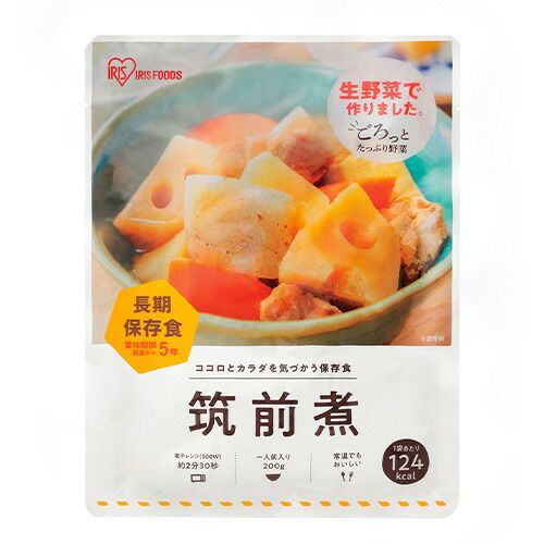 ●仕様:筑前煮●1袋容量:200g(1人前)●エネルギー(1袋あたり):約124kcal●賞味期限:製造日より5年