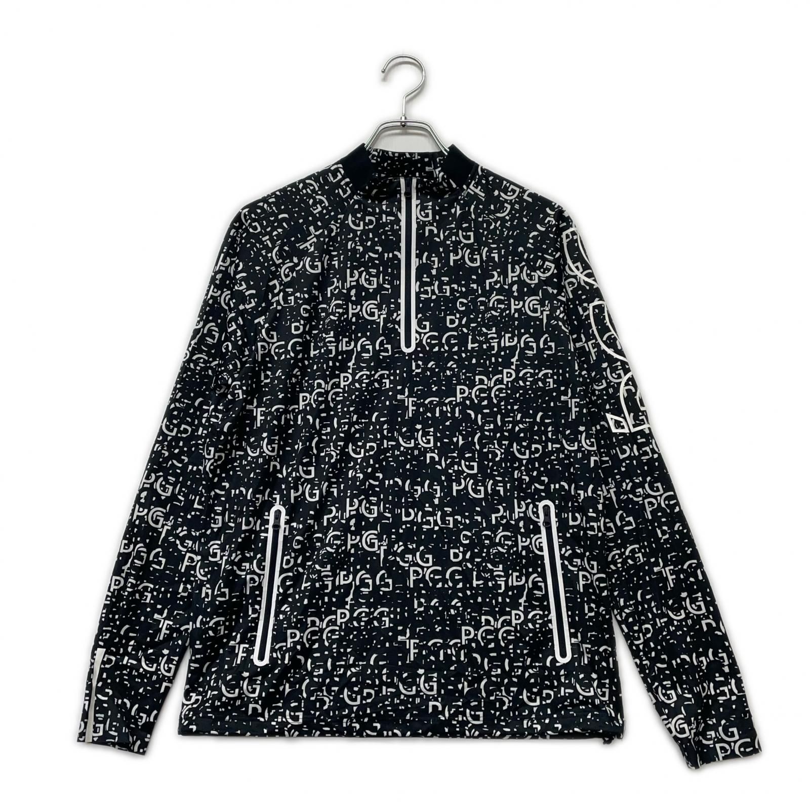 メンズ ピージージー PGG 長袖シャツ 5 L 黒×白 ハーフジップ モックネック ロゴ総柄 薄手