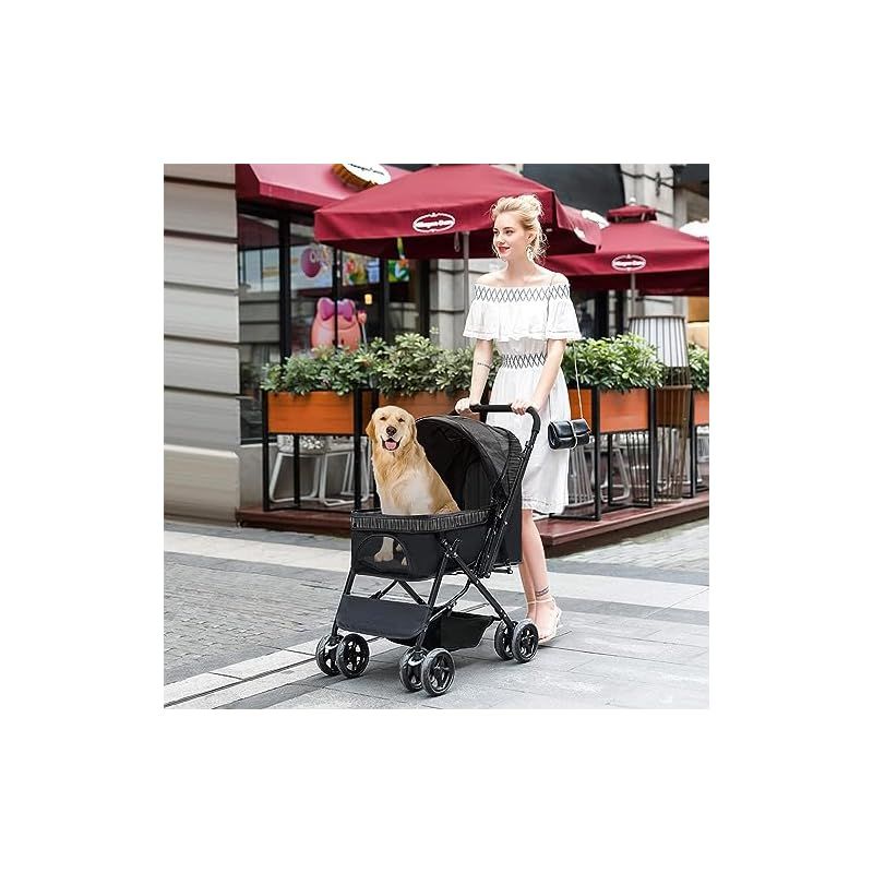商品名:LPOTIUS ペットカート 軽量 折りたたみ 対面式 2way 犬用ベビーカー 猫バギー 4輪 前輪360度回転 後輪ブレーキ付 中型犬 小型犬 多頭用 猫犬兼用 老犬 お出かけ 通院 介護用 多機能 ペットバギー ドッグカート 耐荷重20KG (ブラック)
