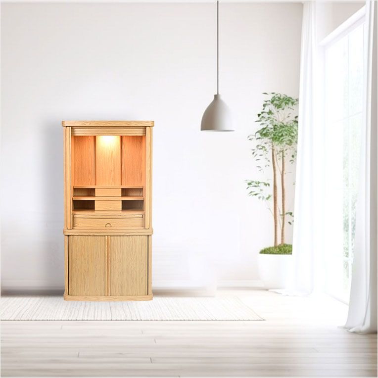 モダン仏壇 省スペース型 巻き戸扉 40号中型仏壇 ワイドタイプ ジルバ オークライト色