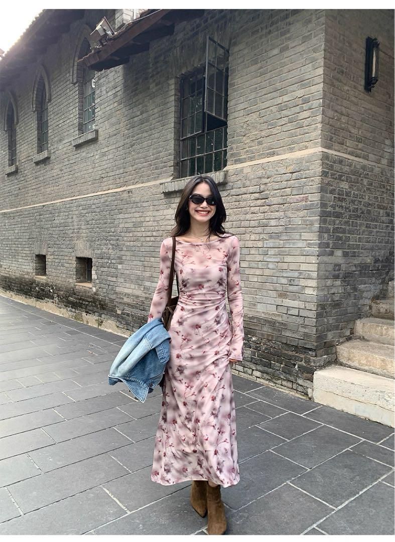 夏秋の大人女子会やデートにぴったり!フレンチローズプリントのロングワンピースで、韓国風高見えスタイルを叶えよう。フレアスリーブとウエストハグデザインで、エレガントなシルエットを演出します。普段着からパーティーまで、あなたの魅力を引き出すアイテムです。
